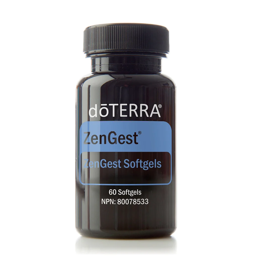 Introducing doTERRA ZenGest Softgels, a convenient and natural solution for digestive support and relief. Infused with essential oils like Ginger, Peppermint, and more, these vegetarian softgels provide soothing comfort for mild stomach discomfort and nausea. NPN: 80078533.